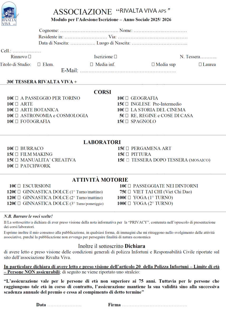 Rivalta Viva APS C.F. 95581770013 - Via Balegno 4 Rivalta di Torino Cell. 3282016801